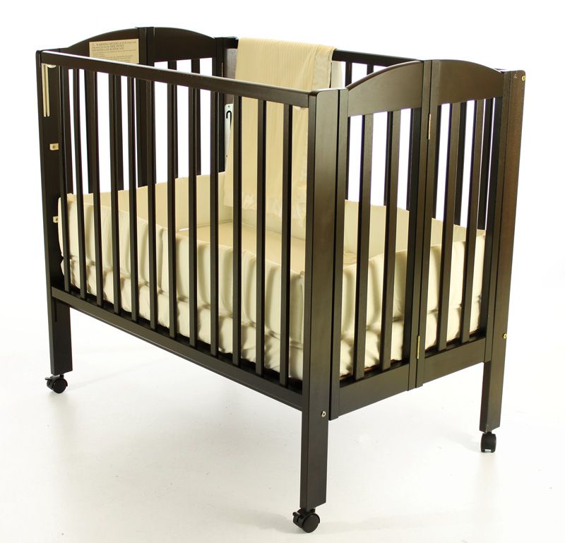 cheapest Dream On Me, 3 in 1 Folding Portable Crib, Espresso online Shop for Cribs from Cribs.com! Quick to adjust to fit your needs, the Dream On Me 3 in 1 Folding Portable Crib - Espresso is a smart alternative to a bulky crib. Particularly useful in daycares, grandparents' homes, and vacation homes, this portable crib stores flat under a bed or in a closet and can even be packed into some vehicles for traveling. When nighttime arrives, simply stand it up, expand the frame, and lock the safety latches. The side rails remain stationary for safety, while the mattress platform can be adjusted to three heights: low for use as a playpen, medium for use as a crib, and high for use as a changing table. Protected by a non-toxic espresso finish, this solid pine crib is both lightweight and mobile: dual, safety-hooded, locking wheels let you roll it smoothly from room to room. Mattress and all tools for easy assembly are included for your convenience. Baby weight limit is 35 pounds. This crib is built with a U.S. patented rail design and is JPMA Certified. About Dream On Me, Inc. Dream On Me, Inc. manufactures quality baby products. Family-owned and -operated since 1988, Dream On Me prides itself on quality service and products. Extensive experience, professional expertise, and tough standards ensure the top quality of the company's merchandise. Dream On Me mattresses and bedding are made with pride in the USA. The company proudly features innovative patents on two of its mattresses. Customer satisfaction is Dream On Me's top priority. The company has a large selection of gift sets, novelty gifts, diaper bag gift sets, and baby accessories. Dream On Me imports the finest-quality gifts and accessories, cribs, walkers, and strollers.