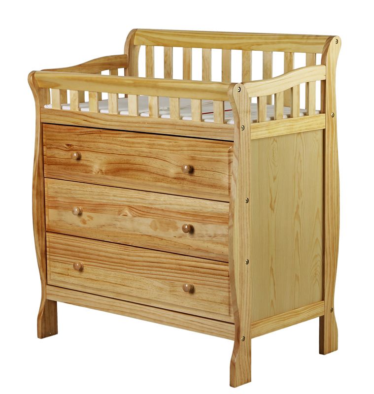 Shop for Changing Tables from Cribs.com! Thanks to its natural wood finish and practical storage, the Dream On Me Marcus Changing Table and Dresser - Natural will never go out of style. A dresser and changing table in one, this convenient piece offers plenty of storage and a safe place to change your baby. Constructed with solid wood, this JPMA Certified dresser changing table boasts a classic sleigh style and an ever-fresh natural wood finish that will match any nursery theme. The top of the changing table is equipped with its own changing pad, restraining strap with easy-release buckle, and safety rails to help you keep your baby secure while changing all those wonderful diapers. All tools for assembly are included. About Dream On Me, Inc. Dream On Me, Inc. manufactures quality baby products. Family-owned and -operated since 1988, Dream On Me prides itself on quality service and products. Extensive experience, professional expertise, and tough standards ensure the top quality of the company's merchandise. Dream On Me mattresses and bedding are made with pride in the USA. The company proudly features innovative patents on two of its mattresses. Customer satisfaction is Dream On Me's top priority. The company has a large selection of gift sets, novelty gifts, diaper bag gift sets, and baby accessories. Dream On Me imports the finest-quality gifts and accessories, cribs, walkers, and strollers.